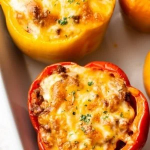 THIS WEEK'S MENU › Stuffed Peppers Image 1 of 1 Stuffed Peppers $12.00 Bell peppers roasted and stuffed with sauteed ground beef, pork, onions and garlic, topped with marinara and parmesan cheese Add To Cart Added! Bell peppers roasted and stuffed with sauteed ground beef, pork, onions and garlic, topped with marinara and parmesan cheese